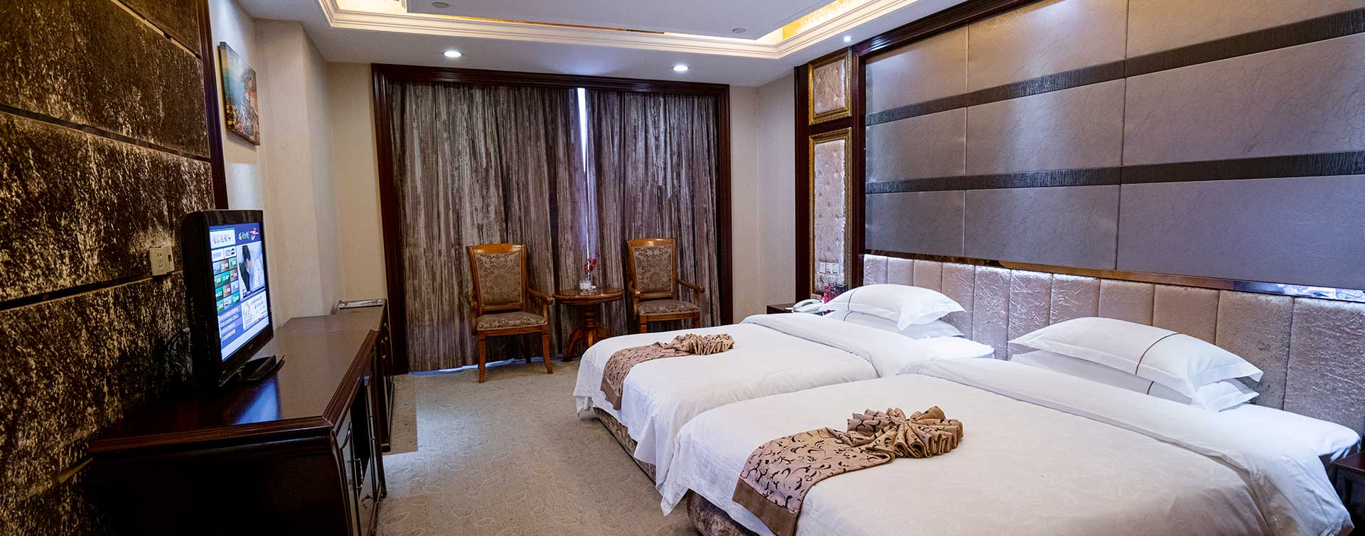 酒店拥有68间客房和1间套房,设有婚俗文化展示区。房内设施一应俱全,均配备轻奢寝具用品和经典中式家具。温岭地道风味早餐,是七星云顶商务宾馆为旅客体验美好出行提供的特色服务之一。