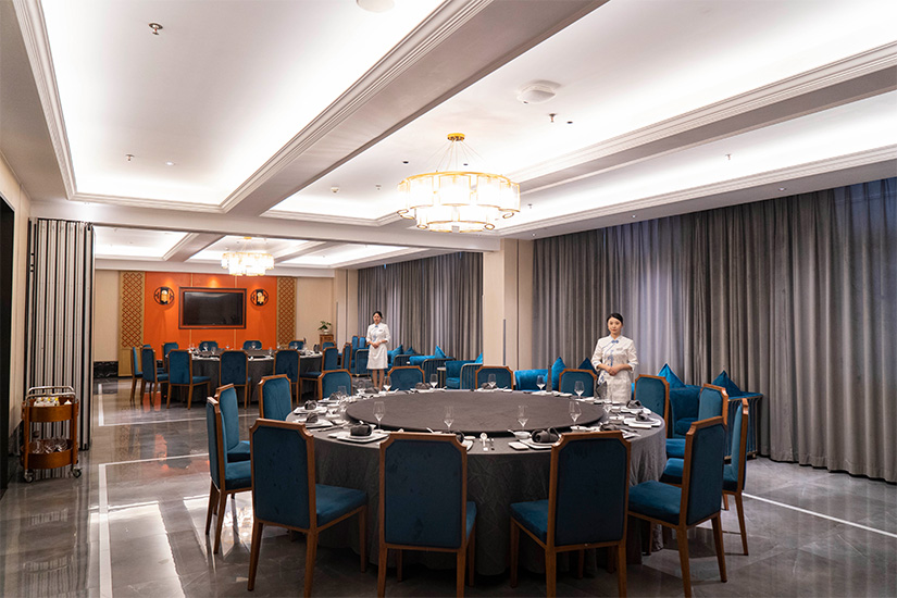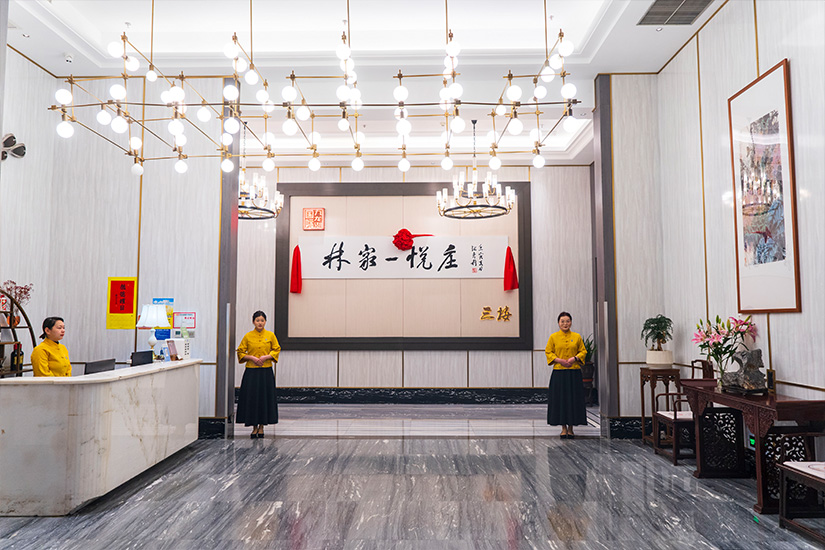 建于2018年,位于温岭地标九龙湖畔的九龙湖国际,功能完善,内设国际宴会中心、九龙湖国际 · 悦庄和林家台菜。
