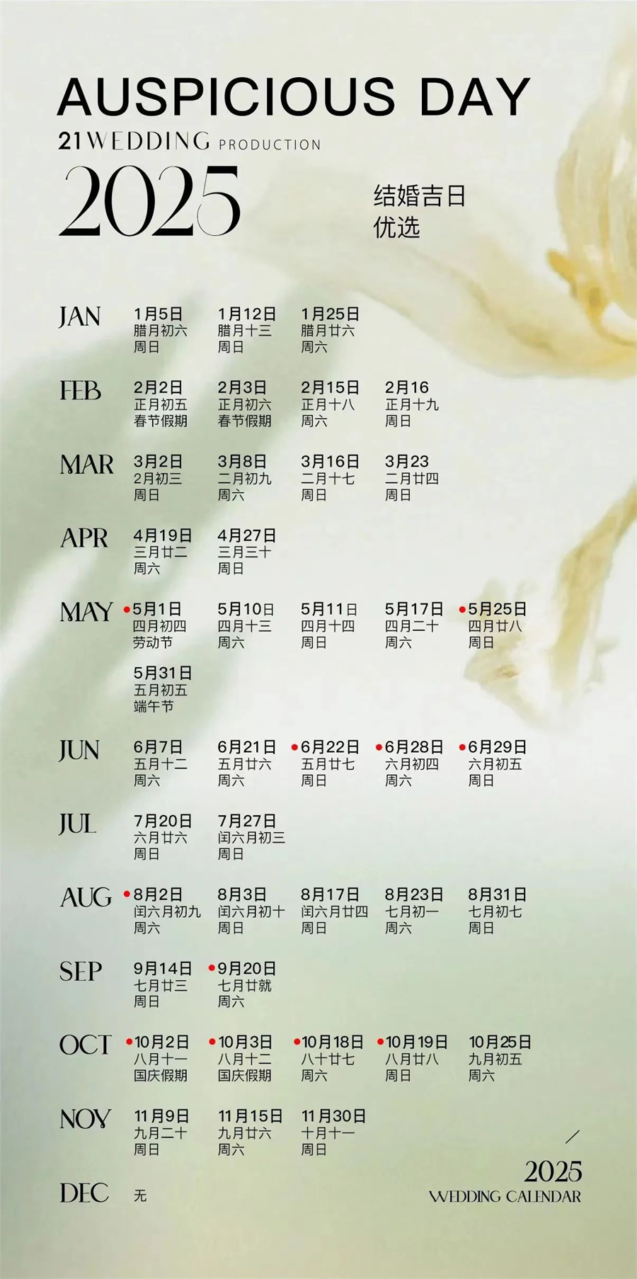 2025年结婚吉日分布